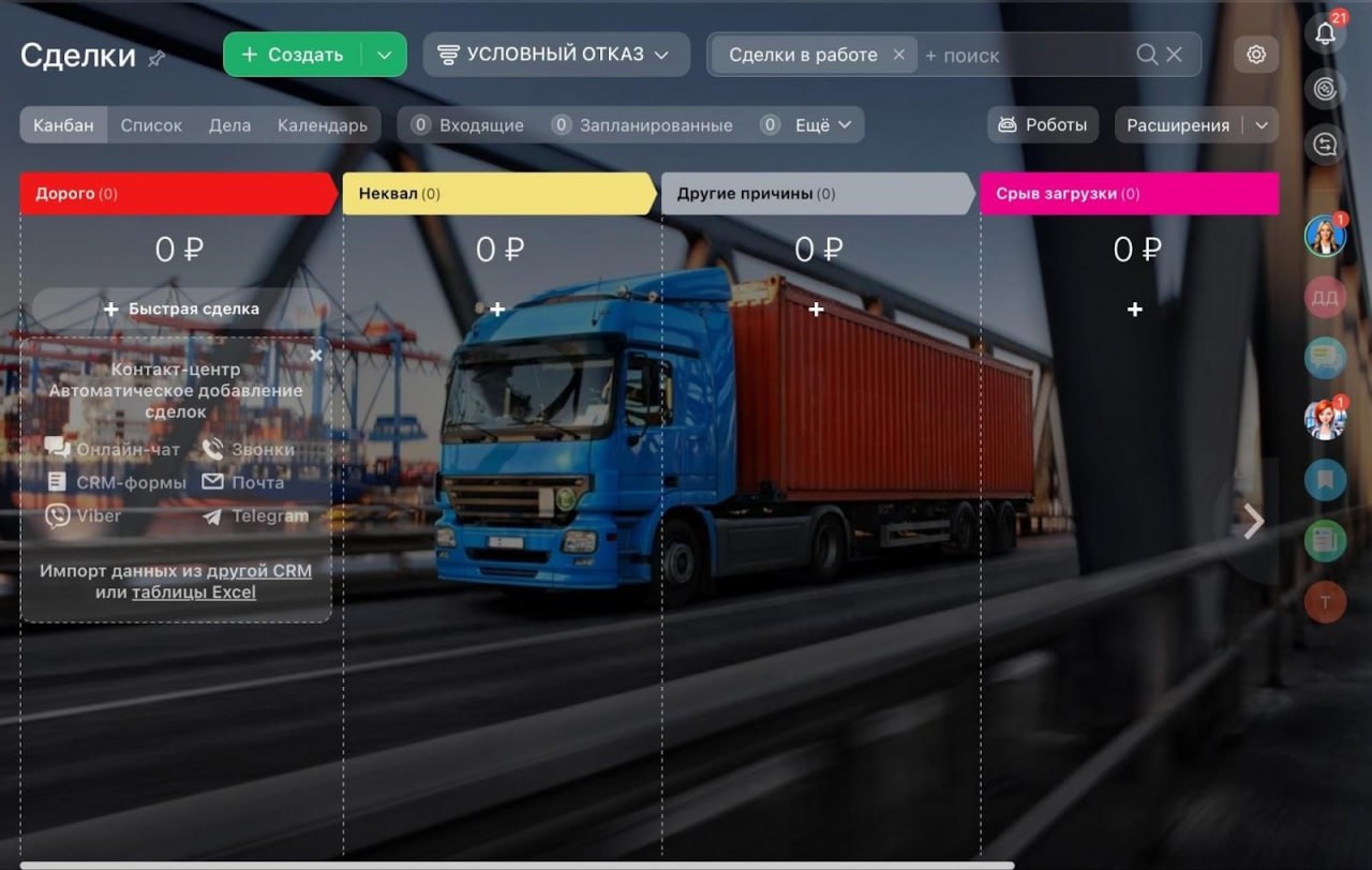 ✅ Чёткие воронки продаж — визуализацию и контроль каждого этапа цикла сделки.