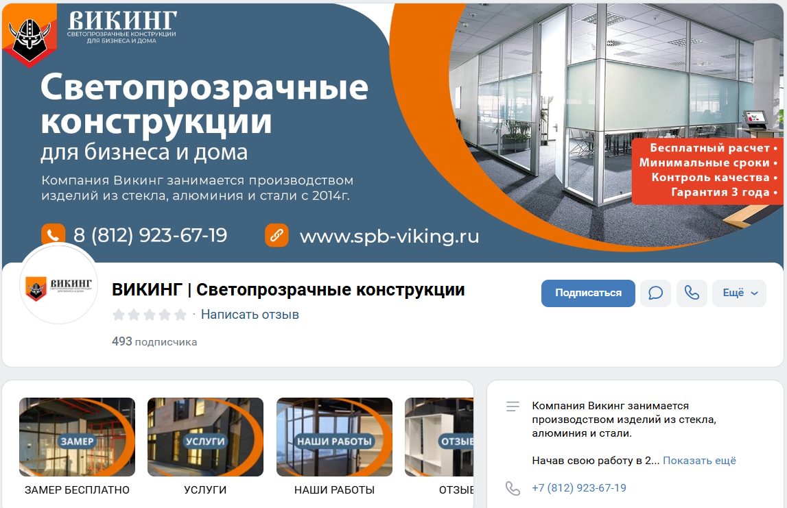 https://vk.com/spbviking — компания по изготовлению офисных перегородок и фасадного остекления. Средний чек у клиента ~300-500 тыс. рублей.