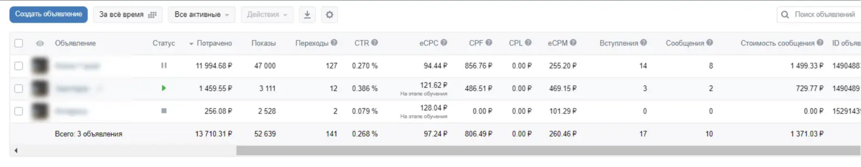 • Средний CTR: 0.26%