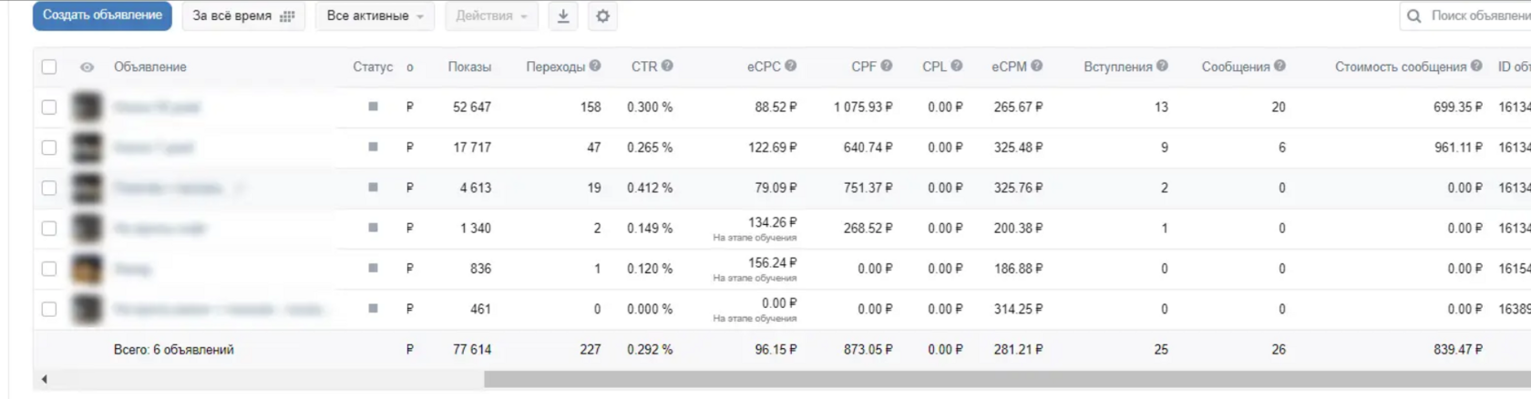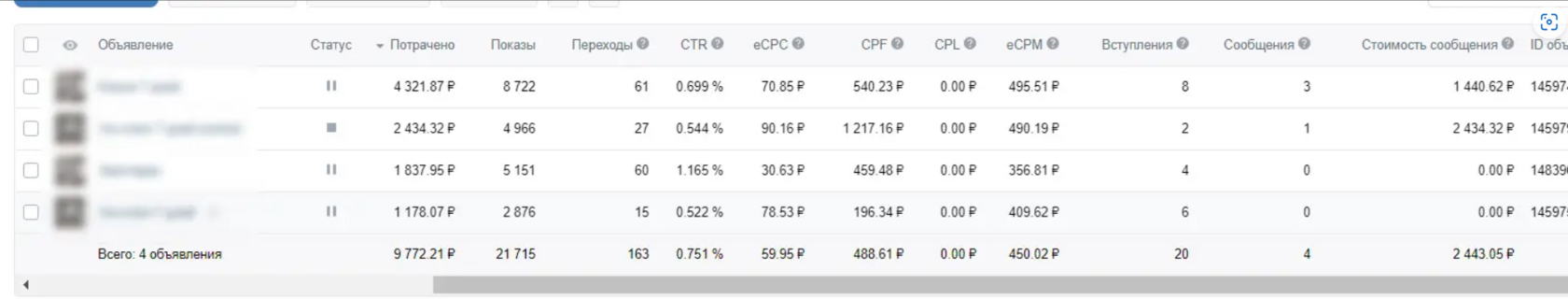 • Средняя цена клика: 78.14₽