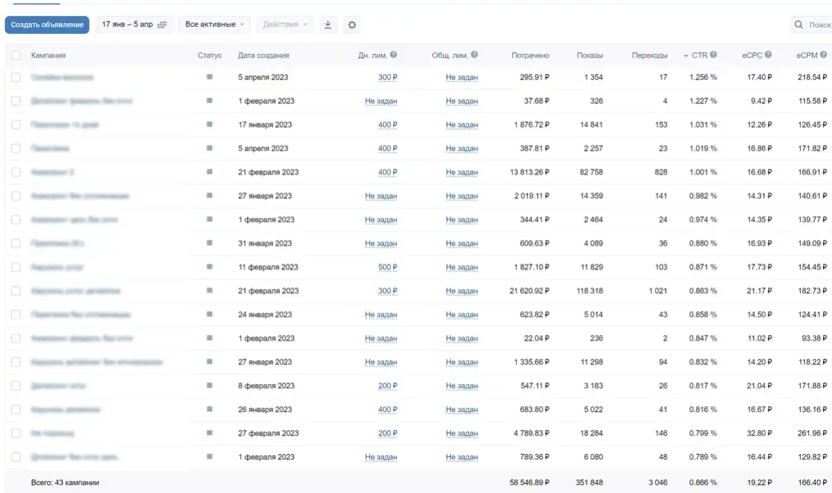 Стоимость заявки в среднем была 468 рублей. Это было слишком дорого для нас, и мы продолжили искать связки.