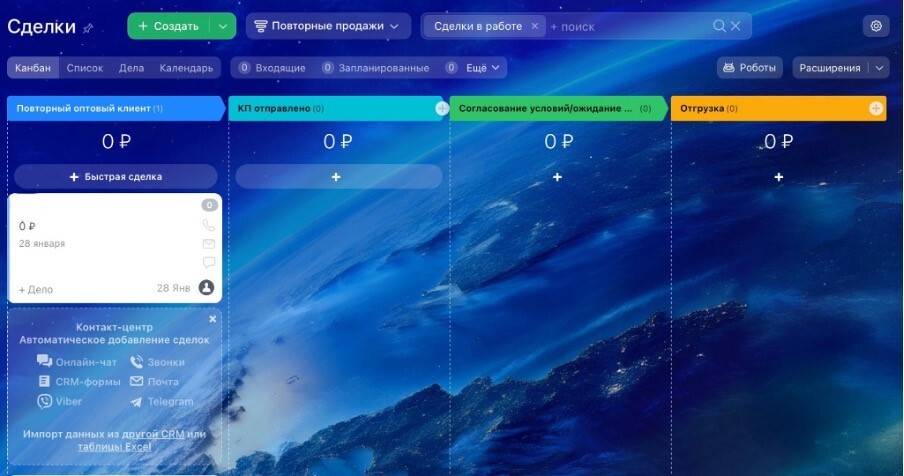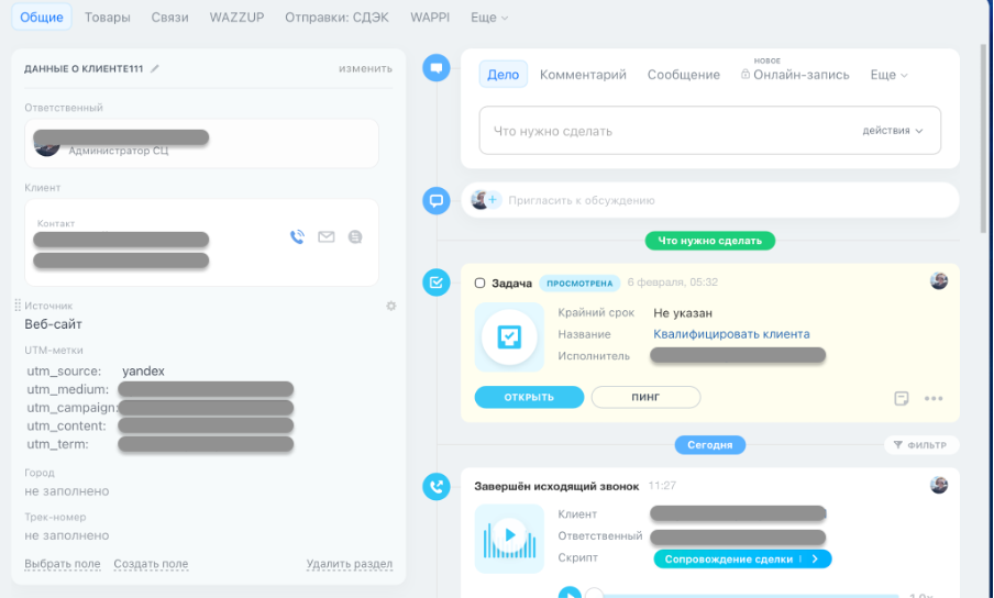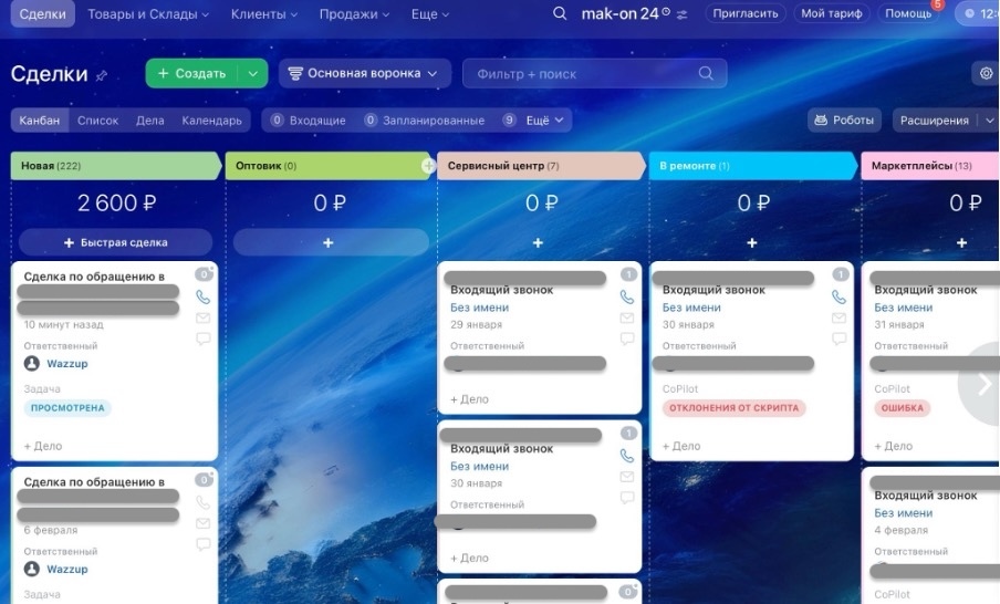 В CRM были подключены каналы трафика и настроена логика взаимодействия с клиентами: