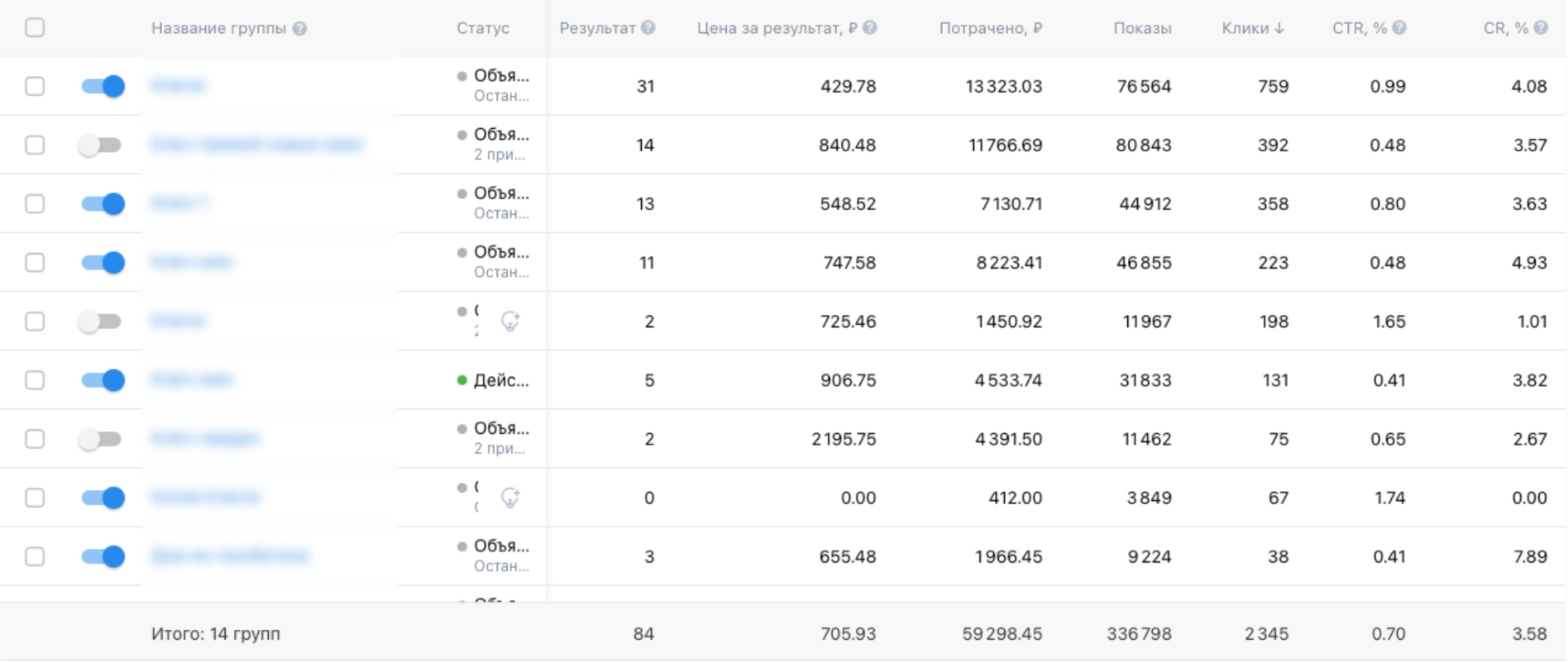 Сделали анализ ниши и конкурентов. Разработали и протестировали 10 способов продвижения, протестировали более 10 аудитории (по аватару). Протестировали более 50 креативов и текстов.