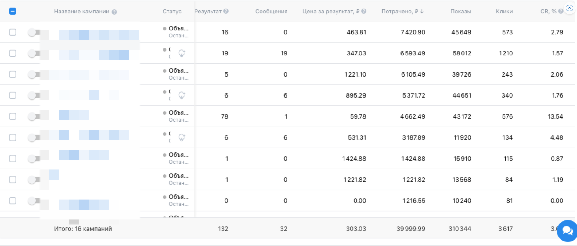 Скрин всех кампаний